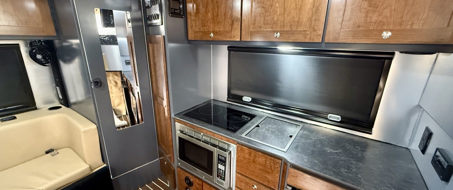 Tiger’s PANTHERA 240 offers increased overall headroom with an overhead queen bed (6’6″ east-west x 5’7″ north-south with 33″ clearance) and 6’8″ overall headroom.